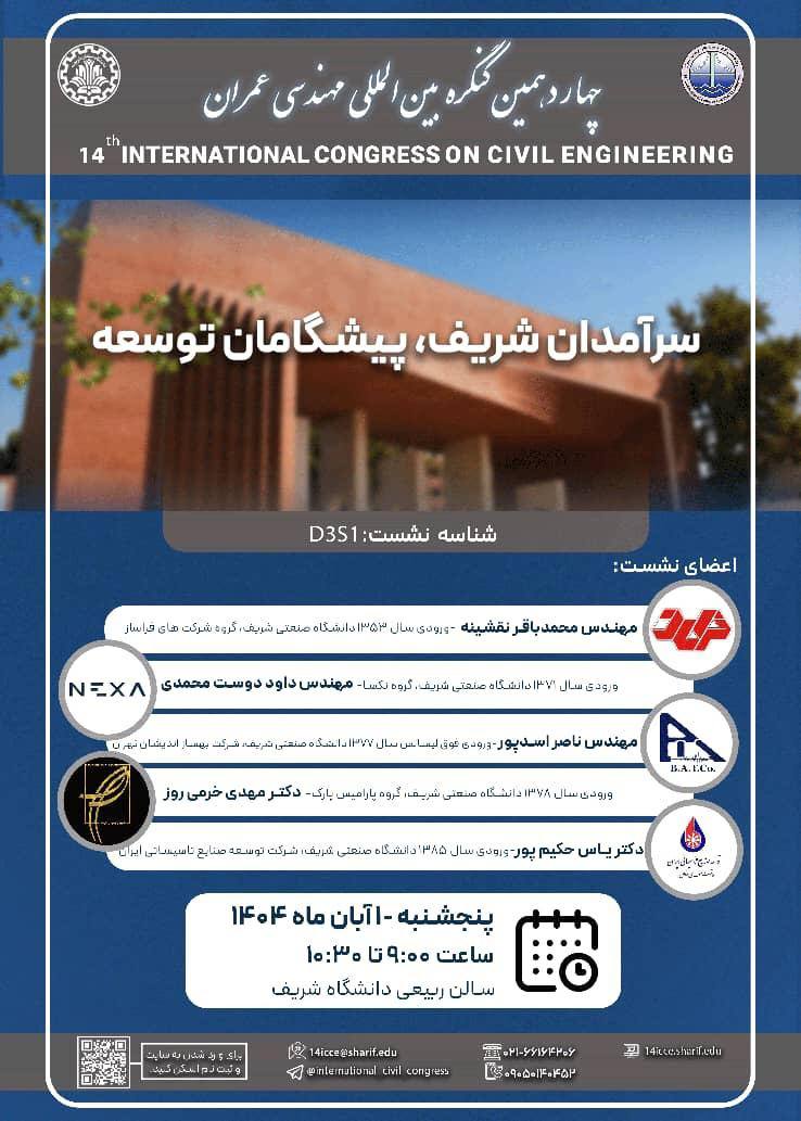 ۲۹ مهرماه ۱۴۰۴ ۸:۳۰ تا ۱۲:۳۰ سالن ربیعی، دانشگاه صنعتی شریف
